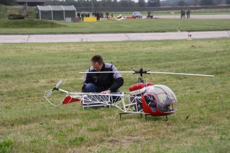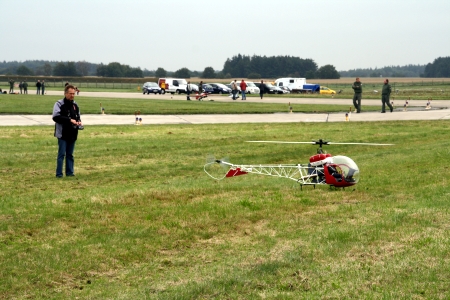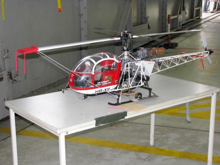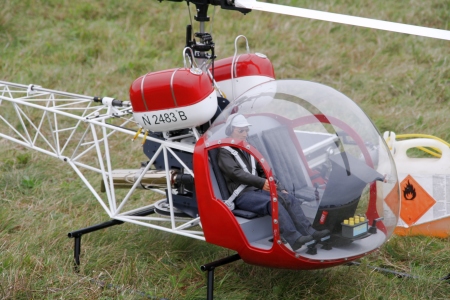 Ulli Günther mit seiner BELL 47 GIII von Vario Die Bell hat einen Rotordurchmesser von 2,30m und wird von einem ZG26 angetrieben. |