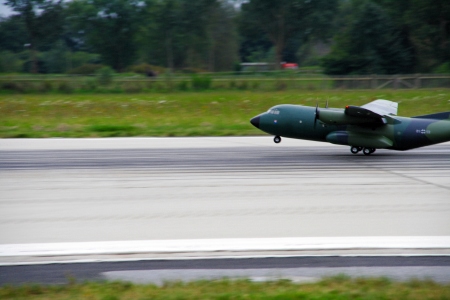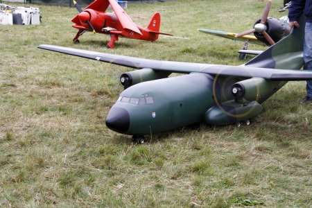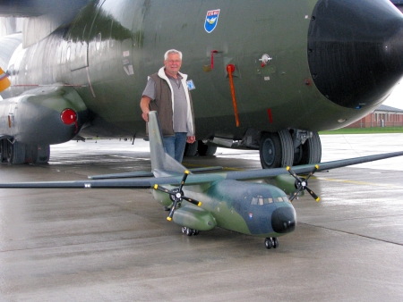 Danach folgte gleich der Rollout Uwe seiner Transall, die sehr gekonnt und realistisch dem Publikum vorflog. Einige Daten zum Modell: M 1:10 Spannweite 4,00 m Motoren 2x DLE 30ccm Gewicht 24,8 Kg