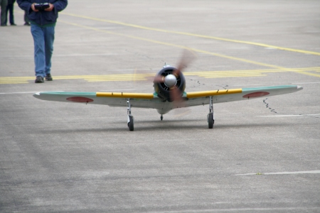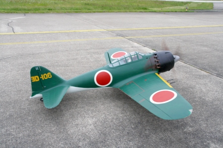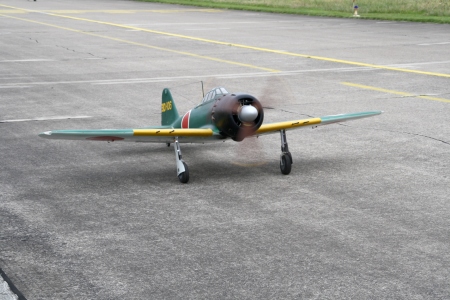 Jörg Gent mit seiner ZERO. Jörg war extra aus Stockelsdorf bei Lübeck angereist um uns zu unterstützen. Die Zero hatte einen Sternmotor verbaut und hatte einen herrlichen Sound. Ebenso originell flog Jörg seine Zero vor. |