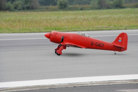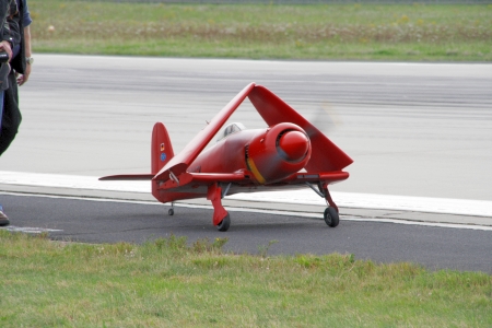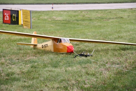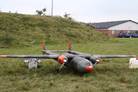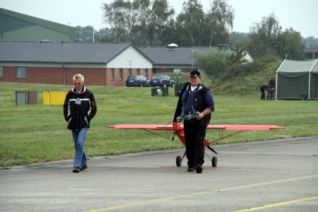 Ebenso wie Jörg, kam Reimer Behrens aus Stockelsdorf vom MFC Möwe Stockeldorf und brachte seine Sea Fury SB11 mit. Er ließ es sich natürlich nicht nehmen bis an die Startstelle mit auf- geklappten Flügeln zu rollen |