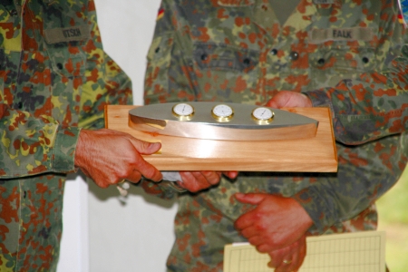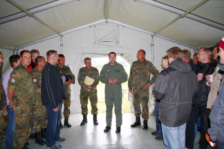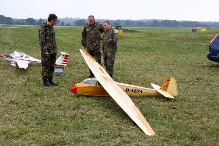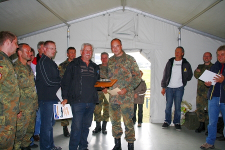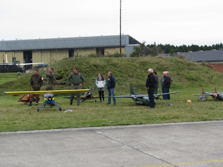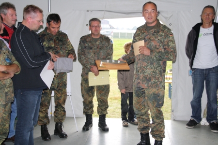 Am Ende des Tages bedankten sich der Kommodore des Geschwaders, (Oberst Neumann) und der Kommandeur Technische Gruppe (Oberstleutnant Sakowski) bei den Modellfliegern und dem Helferteam von Michael. Jeder Teilnehmer erhielt eine Urkunde. Danach wurden vier Modelle ausgezeichnet die von einer Kommission bestehend aus Oberstleutnant Sakowski, Oberstleutnant Utsch und zwei weiteren Angehörigen des LTG, als die Besten der ausgestellten und vorgeflogenen Modelle auserkoren wurden: 1.Platz Transall C160, Uwe Kühl; 2.Platz Bücker Jungmeister, Hans-Jacob David, 3.Platz Scheibe L-Spatz 55, Oliver Theede; 4. Platz Zero, Jörg Gent. Diese Piloten erhielten noch zusätzlich eine Baseball Cap und zu guter letzt erhielt Uwe Kühl verdient eine Trophäe für den 1.Platz bestehend aus einer Wetterstation aufgebaut auf einem Original Abschnitt eines Propellerblattes einer C160 Transall.